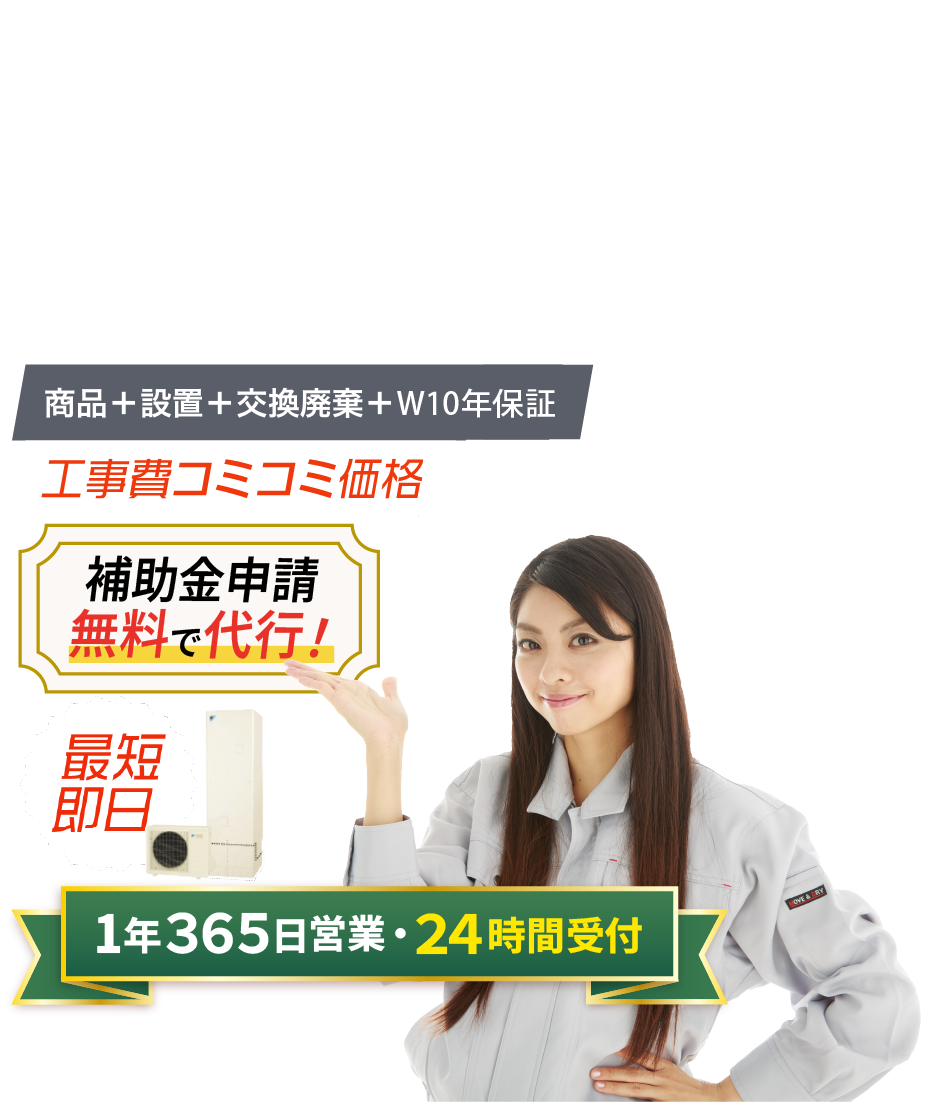 当社でエコキュートを設置されたお客様は、コールセンターで24時間365日、メーカー修理の受け付けが可能です。保証開始日より最大10年間のサポートをお約束します。