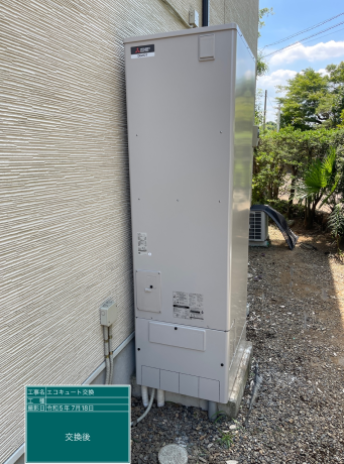 交換した三菱 SRT-S466は、「フルオート」の機能が特徴の角型・フルオートのエコキュートで、タンク容量は460、圧力は標準圧となっています。