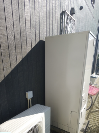 交換した三菱 SRT-S376は、「フルオート」の機能が特徴の角型・フルオートのエコキュートで、タンク容量は370L、圧力は標準圧となっています。