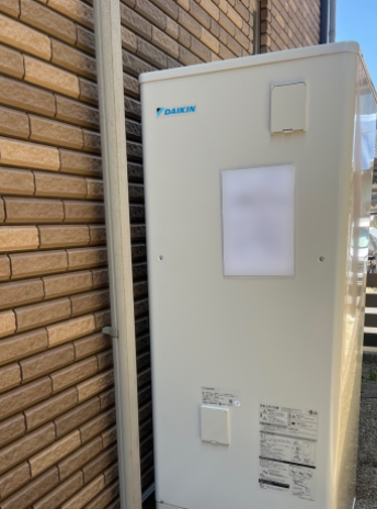交換したダイキン EQX37XFVは、「フルオート 無線LAN対応リモコン(要Wi-Fi環境) パワフル高圧給湯 おゆぴかUV 気象警報緊急沸き上げ 自動配管洗浄 昼間シフト機能・昼間シフト天気予報連動」の機能が特徴の角型・フルオートのエコキュートで、タンク容量は370L、圧力はパワフル高圧となっています。