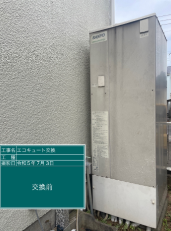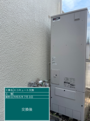 交換した三菱 SRT-S376は、「フルオート」の機能が特徴の角型・フルオートのエコキュートで、タンク容量は370L、圧力は標準圧となっています。