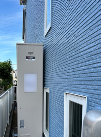 交換した三菱 SRT-S436UZは、「フルオート 高圧パワフルモデル」の機能が特徴の薄型・フルオートのエコキュートで、タンク容量は430L、圧力はハイパワー高圧となっています。