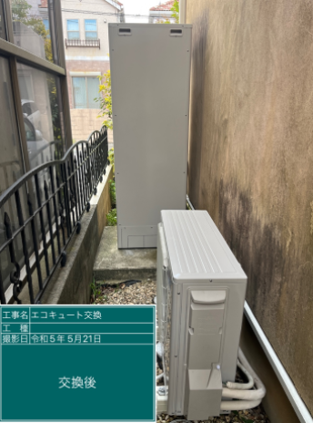 交換した三菱 SRT-S375Uは、「フルオート 高圧パワフルモデル」の機能が特徴の角型・フルオートのエコキュートで、タンク容量は370L、圧力はハイパワー高圧となっています。