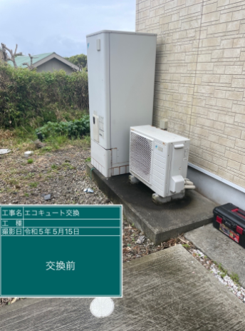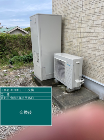 交換したダイキン EQX37XFVは、「フルオート 無線LAN対応リモコン(要Wi-Fi環境) パワフル高圧給湯 おゆぴかUV 気象警報緊急沸き上げ 自動配管洗浄 昼間シフト機能・昼間シフト天気予報連動」の機能が特徴の角型・フルオートのエコキュートで、タンク容量は370L、圧力はパワフル高圧となっています。