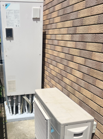 交換したダイキン EQN46WFVは、「フルオート 無線LAN対応リモコン(要Wi-Fi環境) 自動配管洗浄 昼間シフト機能」の機能が特徴の角型・フルオートのエコキュートで、タンク容量は460L、圧力は標準圧 となっています。
