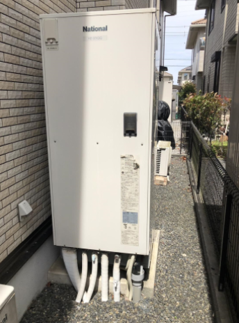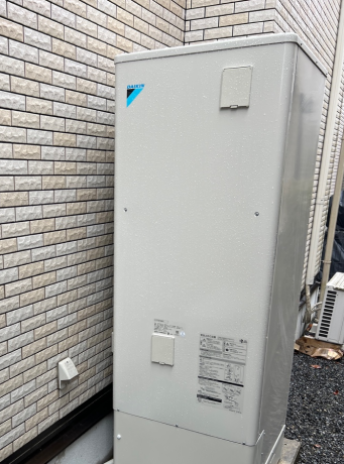 交換したダイキン EQ37WFVは、「フルオート 無線LAN対応リモコン(要Wi-Fi環境) パワフル高圧給湯 自動配管洗浄 昼間シフト機能」の機能が特徴の角型・フルオートのエコキュートで、タンク容量は370L、圧力はパワフル高圧となっています。