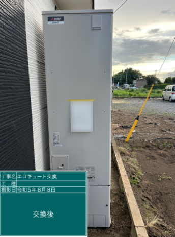 交換した三菱 SRT-W465は、「フルオート」の機能が特徴の角型・フルオート のエコキュートで、タンク容量は460L、圧力は標準圧 となっています。