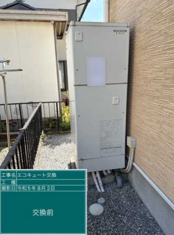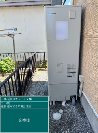 交換したダイキン EQX37XFVは、「フルオート 無線LAN対応リモコン(要Wi-Fi環境) パワフル高圧給湯 おゆぴかUV 気象警報緊急沸き上げ 自動配管洗浄 昼間シフト機能・昼間シフト天気予報連動」の機能が特徴の角型・フルオートのエコキュートで、タンク容量は370L、圧力はハイパワー高圧となっています。