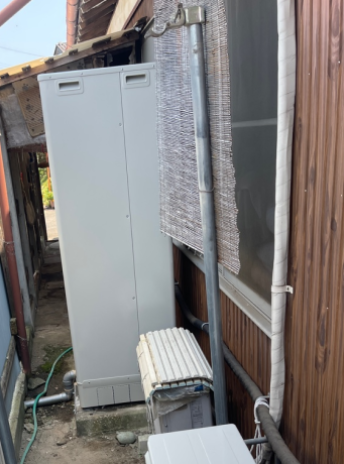 交換したダイキン EQ37WFVは、「フルオート 無線LAN対応リモコン(要Wi-Fi環境) パワフル高圧給湯 自動配管洗浄 昼間シフト機能」の機能が特徴の角型・フルオートのエコキュートで、タンク容量は370L、圧力はパワフル高圧となっています。