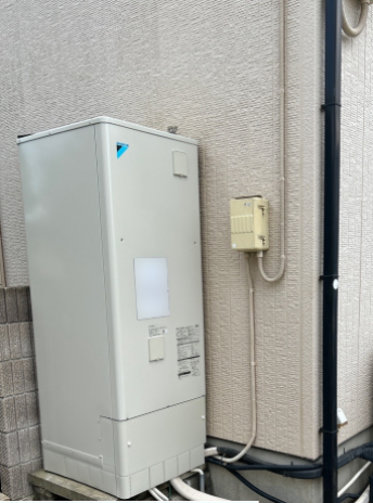 交換したダイキン EQ37WFVは、「フルオート 無線LAN対応リモコン(要Wi-Fi環境) パワフル高圧給湯 自動配管洗浄 昼間シフト機能」の機能が特徴の角型・フルオートのエコキュートで、タンク容量は370L、圧力はパワフル高圧となっています。