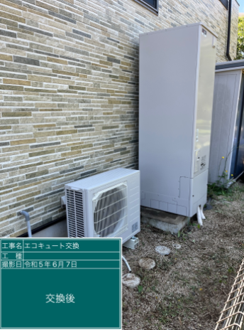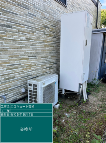 交換した三菱 SRT-W465は、「フルオート」の機能が特徴の角型・ダブル追いだきフルオートのエコキュートで、タンク容量は460L、圧力は標準圧となっています。