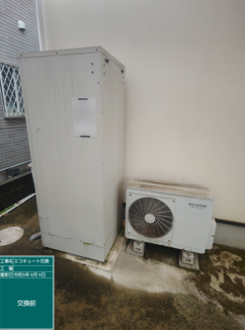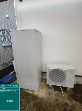 交換したダイキン EQN37WFVは、「フルオート 無線LAN対応リモコン(要Wi-Fi環境) 自動配管洗浄 昼間シフト機能 」の機能が特徴の角型・フルオートのエコキュートで、タンク容量は370L、圧力は標準圧となっています。