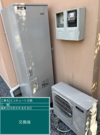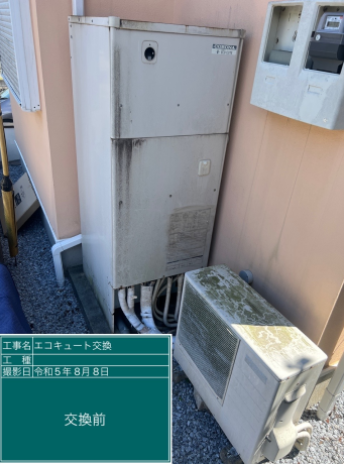 交換した三菱 SRT-S465Uは、「フルオート 高圧パワフルモデル」の機能が特徴の角型・フルオート のエコキュートで、タンク容量は460L、圧力はハイパワー高圧となっています。