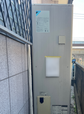 交換した三菱 SRT-S465Uは、「フルオート 高圧パワフルモデル」の機能が特徴の角型・フルオートのエコキュートで、タンク容量は460L、圧力はハイパワー高圧となっています。