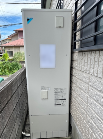 交換したダイキン EQN37WFVは、「フルオート 無線LAN対応リモコン(要Wi-Fi環境) 自動配管洗浄 昼間シフト機能 」の機能が特徴の角型・フルオートのエコキュートで、タンク容量は370L、圧力は標準圧となっています。