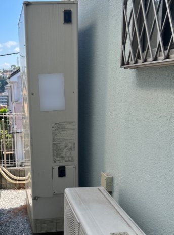 交換したダイキン EQX37XFTVは、「フルオート 無線LAN対応リモコン(要Wi-Fi環境) パワフル高圧給湯 気象警報緊急沸き上げ 自動配管洗浄 昼間シフト機能・昼間シフト天気予報連動」の機能が特徴の薄型・フルオートのエコキュートで、タンク容量は370L、圧力はパワフル高圧 となっています。