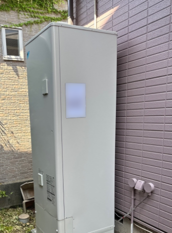 交換したダイキン EQ46WFVは、「フルオート 無線LAN対応リモコン(要Wi-Fi環境) パワフル高圧給湯 自動配管洗浄 昼間シフト機能」の機能が特徴の角型・フルオートのエコキュートで、タンク容量は460L、圧力はパワフル高圧となっています。
