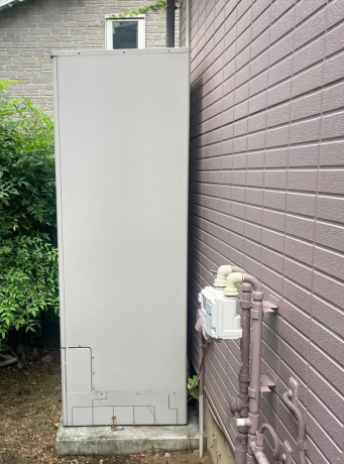 交換したダイキン EQ46WFVは、「フルオート 無線LAN対応リモコン(要Wi-Fi環境) パワフル高圧給湯 自動配管洗浄 昼間シフト機能」の機能が特徴の角型・フルオートのエコキュートで、タンク容量は460L、圧力はパワフル高圧となっています。 三菱 SRT-S46から、ダイキン EQ46WFVに交換いたしました。