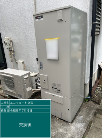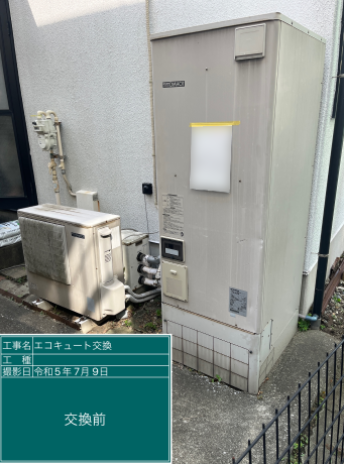 交換した三菱 SRT-W376は、「フルオート」の機能が特徴の角型・フルオートのエコキュートで、タンク容量は370L、圧力は標準圧となっています。