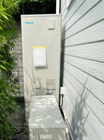 交換したダイキン EQX37XFVは、「フルオート 無線LAN対応リモコン(要Wi-Fi環境) パワフル高圧給湯 おゆぴかUV 気象警報緊急沸き上げ 自動配管洗浄 昼間シフト機能・昼間シフト天気予報連動」の機能が特徴の角型・フルオートのエコキュートで、タンク容量は370L、圧力はパワフル高圧となっています。