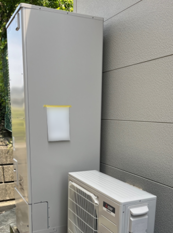 交換した三菱 SRT-S465Uは、「フルオート 高圧パワフルモデル」の機能が特徴の角型・フルオートのエコキュートで、タンク容量は460L、圧力はハイパワー高圧となっています。