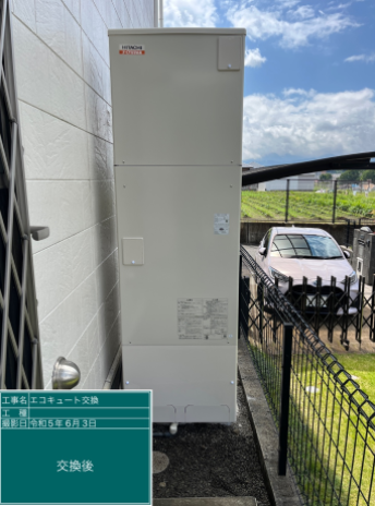 交換した日立 BHP-F46WDは、「水道直圧 フルオート ステンレス配管 自動配管洗浄 ウレタンク」の機能が特徴の角型・フルオートのエコキュートで、タンク容量は460L、圧力は水道直圧となっています。