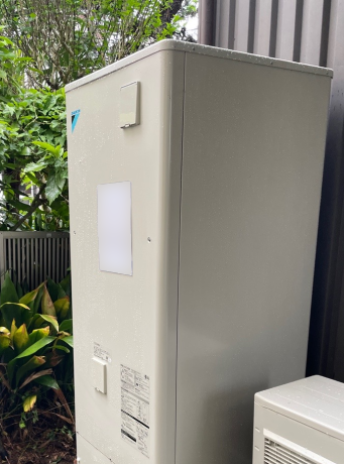 交換したダイキン EQX37WFVは、「フルオート 無線LAN対応リモコン(要Wi-Fi環境) パワフル高圧給湯 自動配管洗浄 昼間シフト機能」の機能が特徴の角型・フルオートのエコキュートで、タンク容量は370L、圧力はパワフル高圧となっています。