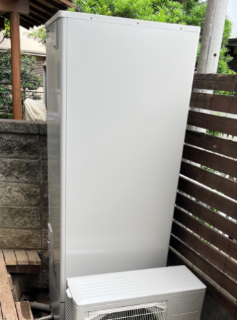 交換した三菱 SRT-W465は、「フルオート」の機能が特徴の角型・フルオートのエコキュートで、タンク容量は460L、圧力は標準圧となっています。