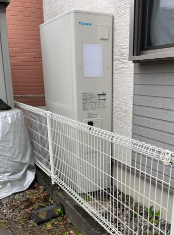 交換したダイキン EQX37XFTVは、「フルオート 無線LAN対応リモコン(要Wi-Fi環境) パワフル高圧給湯 気象警報緊急沸き上げ 自動配管洗浄 昼間シフト機能・昼間シフト天気予報連動」の機能が特徴の薄型・フルオートのエコキュートで、タンク容量は370L、圧力はパワフル高圧となっています。