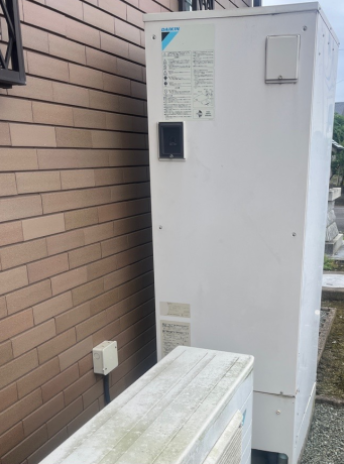 交換したダイキン EQN46WFVは、「フルオート 無線LAN対応リモコン(要Wi-Fi環境) 自動配管洗浄 昼間シフト機能」の機能が特徴の角型・フルオートのエコキュートで、タンク容量は460L、圧力は標準圧となっています。