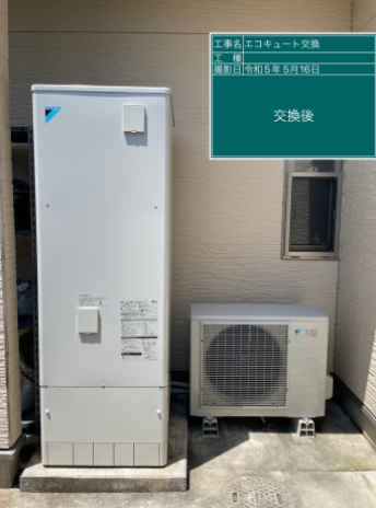 交換したダイキン EQN37WFVは、「フルオート 無線LAN対応リモコン(要Wi-Fi環境) 自動配管洗浄 昼間シフト機能 」の機能が特徴の角型・フルオートのエコキュートで、タンク容量は370L、圧力は標準圧 となっています。