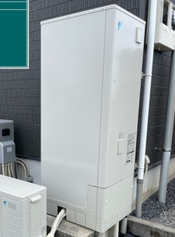 交換したダイキン EQ37WFVは、「フルオート 無線LAN対応リモコン(要Wi-Fi環境) パワフル高圧給湯 自動配管洗浄 昼間シフト機能」の機能が特徴の角型・フルオートのエコキュートで、タンク容量は370L、圧力はパワフル高圧となっています。