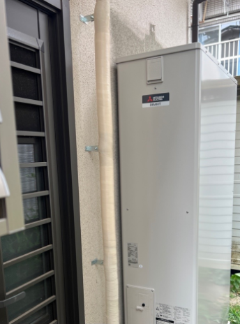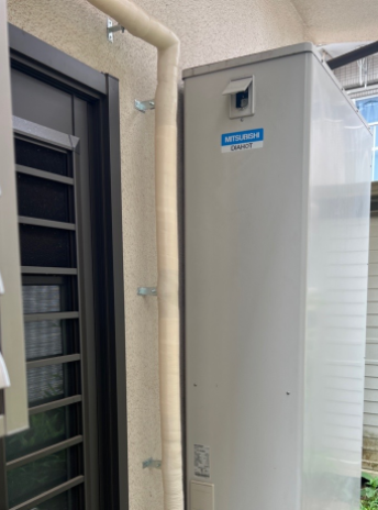 交換した三菱 SRT-S376UZは、「フルオート 高圧パワフルモデル」の機能が特徴の薄型・フルオートのエコキュートで、タンク容量は370L、圧力はハイパワー高圧となっています。
