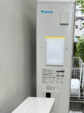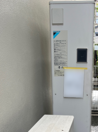交換したダイキン EQX37XFTVは、「フルオート 無線LAN対応リモコン(要Wi-Fi環境) パワフル高圧給湯 気象警報緊急沸き上げ 自動配管洗浄 昼間シフト機能・昼間シフト天気予報連動」の機能が特徴の薄型・フルオートのエコキュートで、タンク容量は370L、圧力はパワフル高圧 となっています。