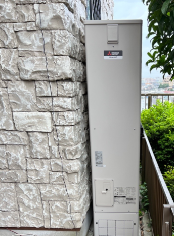 交換した三菱 SRT-S376UZは、「フルオート 高圧パワフルモデル」の機能が特徴の薄型・フルオートのエコキュートで、タンク容量は370L、圧力は標準圧 となっています。