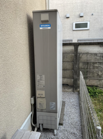 交換した三菱 SRT-S436UZは、「フルオート 高圧パワフルモデル」の機能が特徴の薄型・フルオートのエコキュートで、タンク容量は430L、圧力はハイパワー高圧となっています。