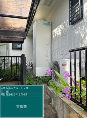 交換した三菱 SRT-S375Uは、「フルオート 高圧パワフルモデル」の機能が特徴の角型・フルオートのエコキュートで、タンク容量は370L、圧力はハイパワー高圧となっています。
