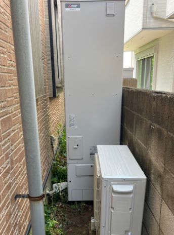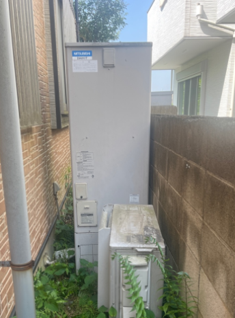 交換した三菱 SRT-S466Uは、「フルオート 高圧パワフルモデル」の機能が特徴の角型・フルオートのエコキュートで、タンク容量は460L、圧力はハイパワー高圧給湯となっています。