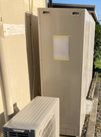 交換した三菱 SRT-S376Uは、「フルオート 高圧パワフルモデル」の機能が特徴の角型・フルオートのエコキュートで、タンク容量は370L、圧力はハイパワー高圧となっています。