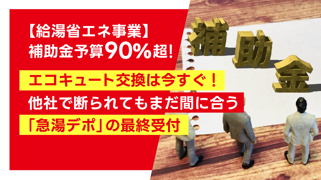 【給湯省エネ事業】補助金予算90%超! エコキュート交換は今すぐ! 他社で断られてもまだ間に合う「急湯デポ」の最終受付