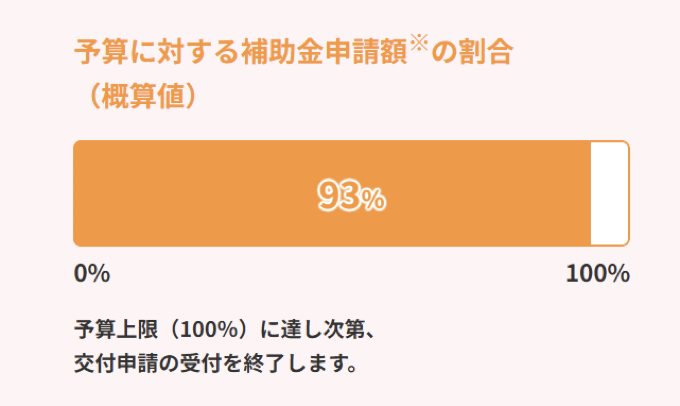しかし、この度、公式情報にて予算に対する補助金申請額の割合が93%に達したことが公表されました(2025年11月25日現在)。