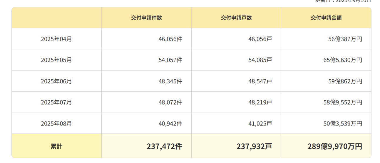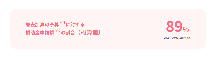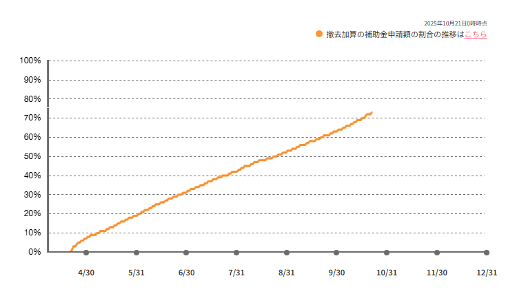 昨年度(2024年)は、11月末に交付申請の「予約」が締め切られ、12月中旬には便利なワンストップ申請(複数の補助金事業をまとめて申請できるもの)が終了するなど、年末にかけて段階的に申請方法が限られていきました。今年も予算の消化ペースが昨年より早いため、同様のスケジュールか、それよりも前倒しで申請受付が終了する可能性が非常に高いと考えられます。