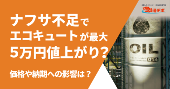ナフサ不足がエコキュートの価格や供給にどう影響するかを解説。三菱電機の部品仕様変更など実際の動向をもとに、最大5万円超の値上がりリスクと今すぐ早めの交換・見積もりを検討すべき理由をわかりやすく説明します。
