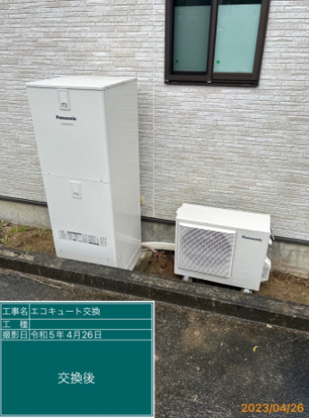 交換したパナソニック HE-NS37KQSは、「フルオート エコナビ 自動配管洗浄 ソーラーチャージ」の機能が特徴の角型・フルオートのエコキュートで、タンク容量は370L、圧力は標準圧となっています。