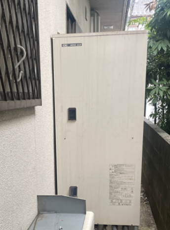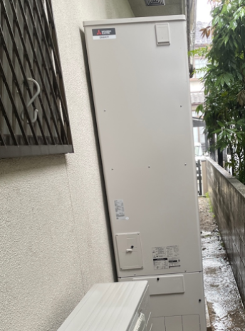 交換した三菱 SRT-S466は、「フルオート」の機能が特徴の角型・フルオートのエコキュートで、タンク容量は460L、圧力は標準圧となっています。