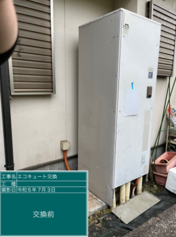 交換した三菱 SRT-S466は、「フルオート」の機能が特徴の角型・フルオートのエコキュートで、タンク容量は460L、圧力は標準圧となっています。