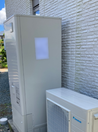 交換したダイキン EQX37XFVは、「フルオート 無線LAN対応リモコン(要Wi-Fi環境) パワフル高圧給湯 おゆぴかUV 気象警報緊急沸き上げ 自動配管洗浄 昼間シフト機能・昼間シフト天気予報連動」の機能が特徴の角型・フルオートのエコキュートで、タンク容量は370L、圧力はパワフル高圧となっています。