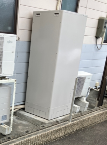 交換した三菱 SRT-W376は、「フルオート」の機能が特徴の角型・フルオートのエコキュートで、タンク容量は370L、圧力は標準圧となっています。