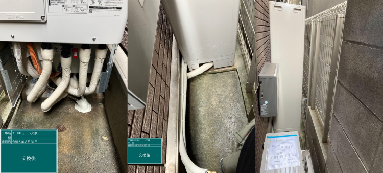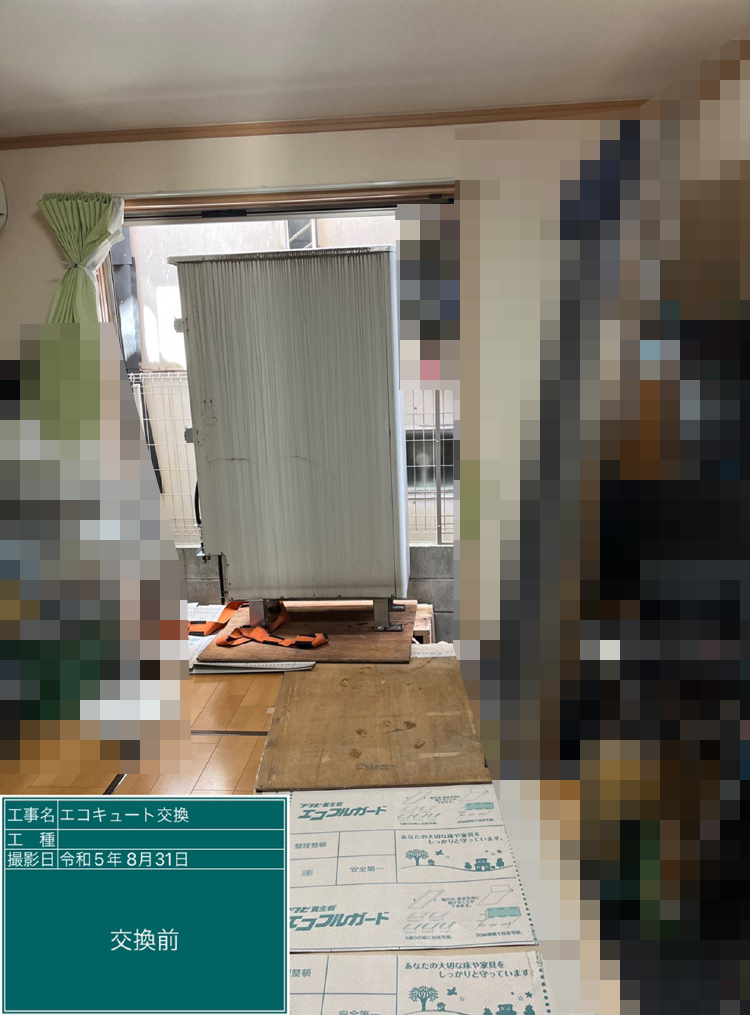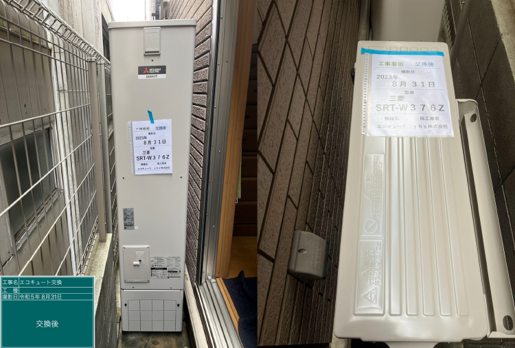 大阪府大阪市阿倍野区で三菱「SRT-W376Z」を設置~足場作成&宅内搬出入で狭小通路のEQを交換<エコキュート交換工事例>