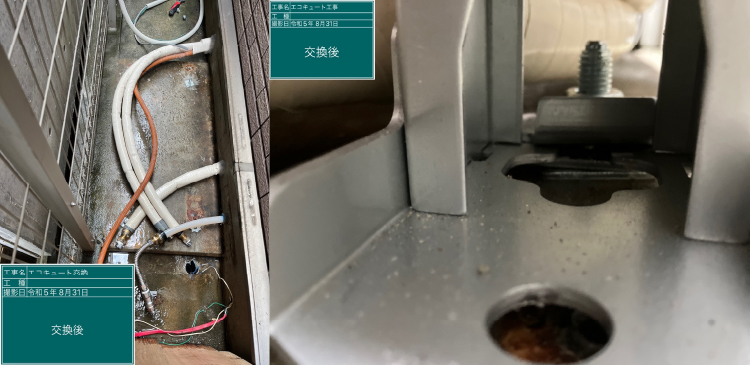 新しいタンクとヒートポンプが設置できたら、それぞれに配管や配線を繋ぎ合わせます。